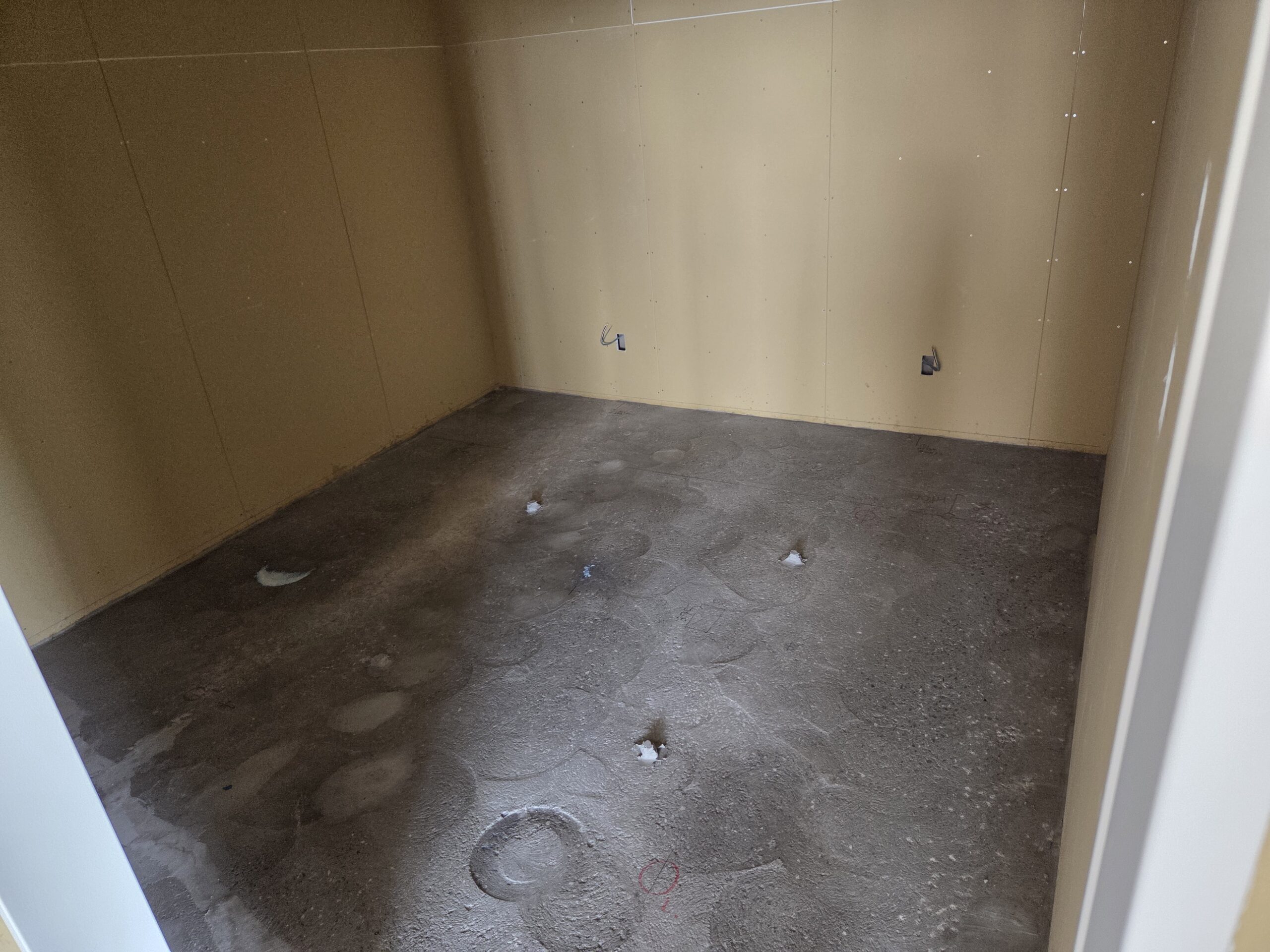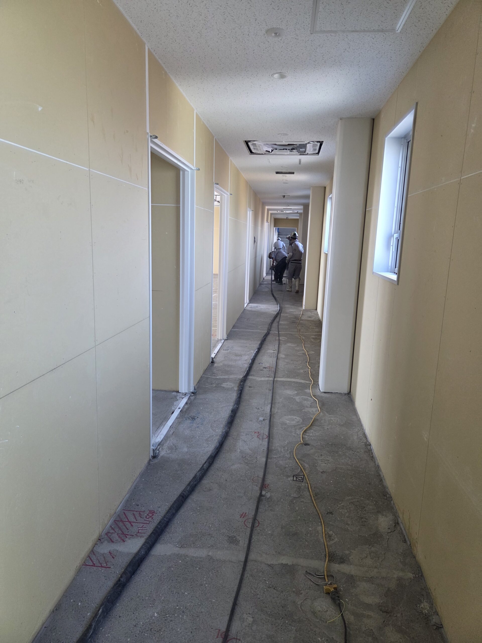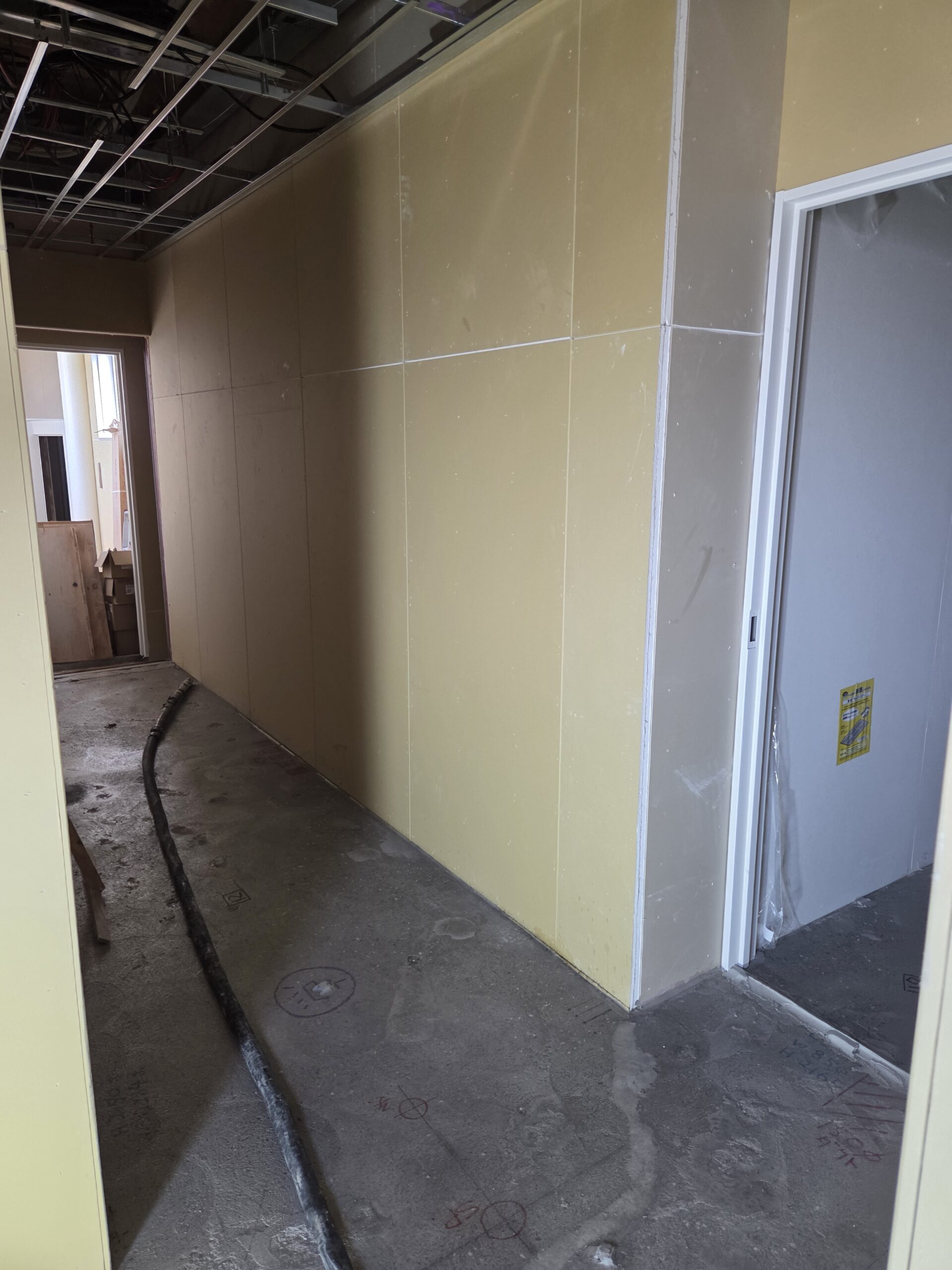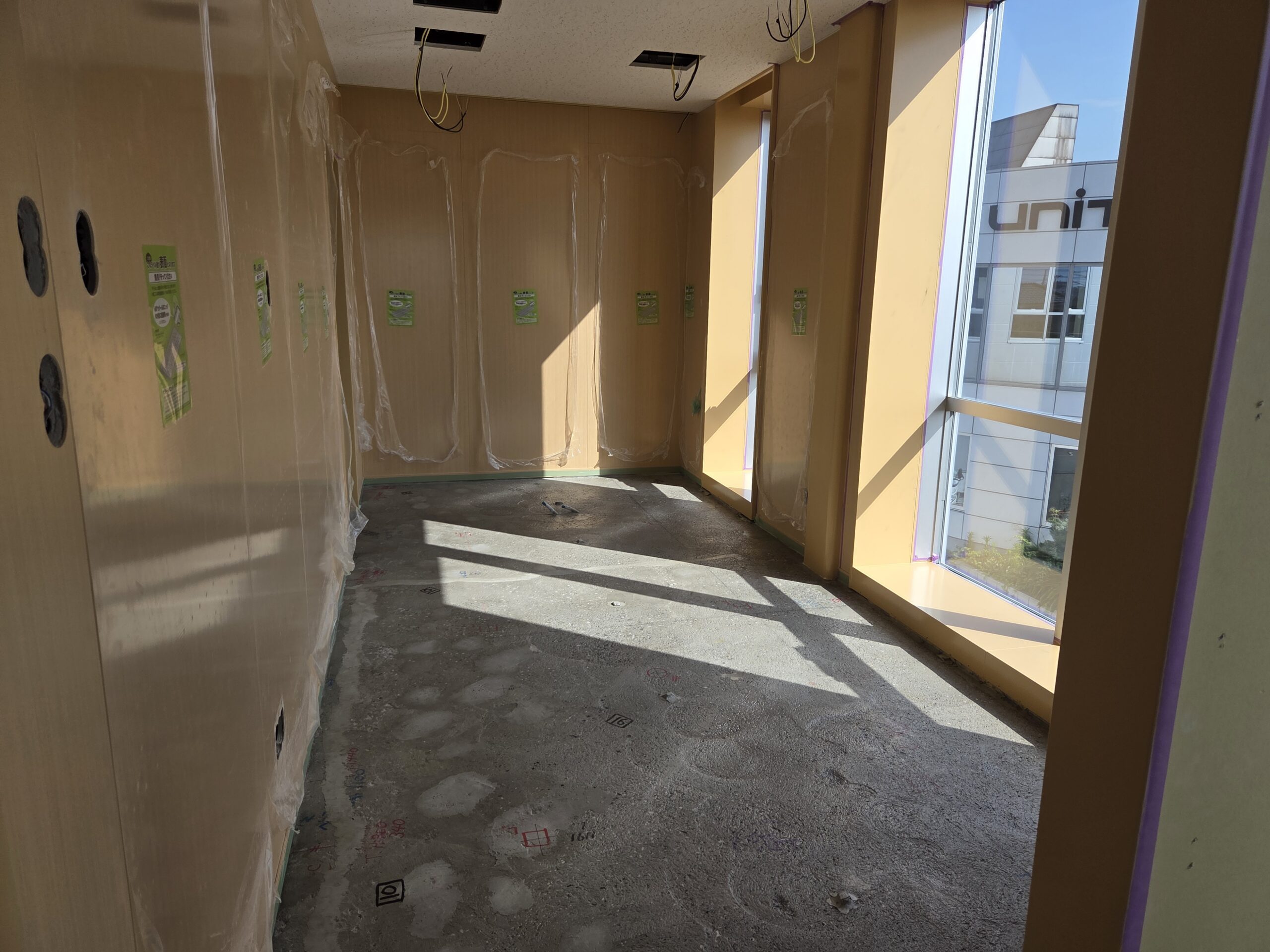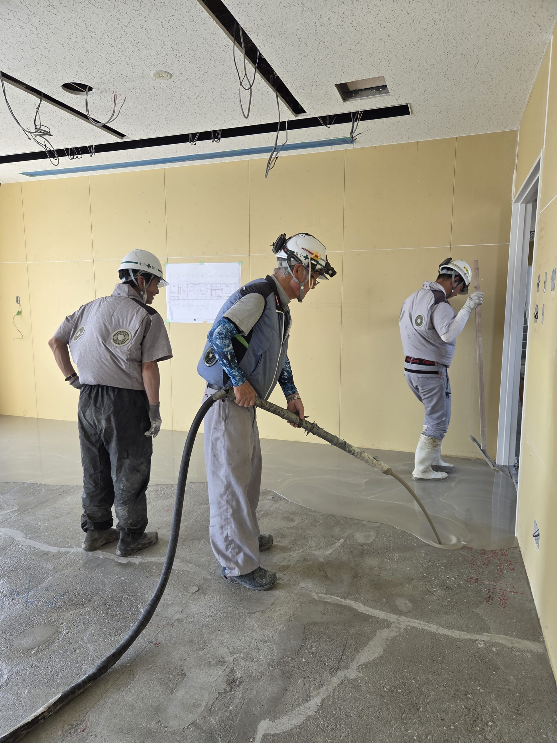 最短で3〜4時間程度で軽歩行が可能となりますが、仕上げ材施工にあたっては、